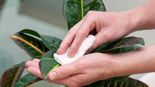 Le foglie vanno anche pulite con un panno umido per rimuovere la polvere …