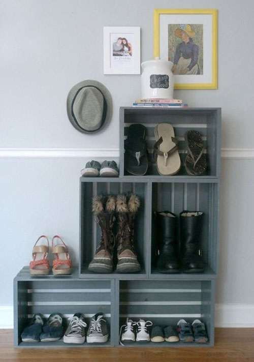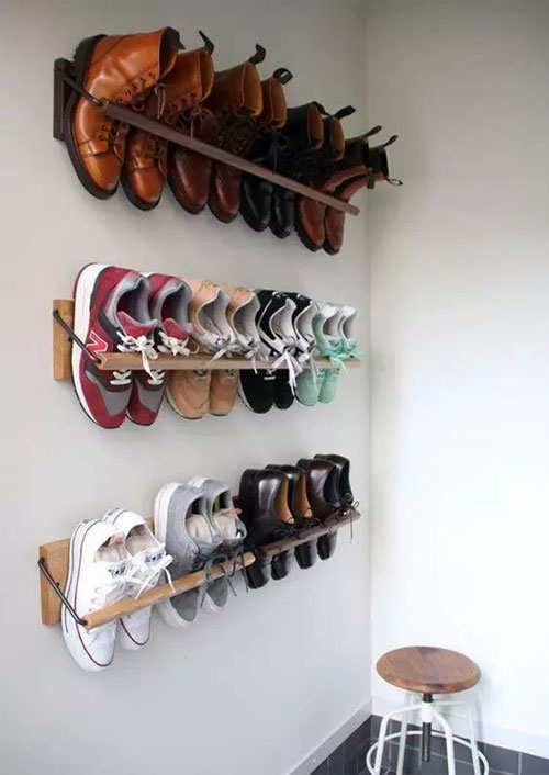 Gli scaffali sono certamente il modo più semplice per disporre le scarpe e averle a vista, basta ordinarle per tipologia e il gioco è fatto. Ricordate però di non esporre le scarpe alla luce diretta del sole che potrebbe farle sbiadire e rovinare.