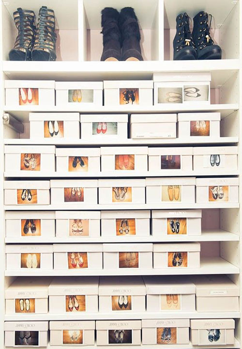 Io preferisco lasciarle nelle scatole e impilarle nella parte del guardaroba. Per riconoscere le scarpe all’interno potete personalizzarle con un’etichetta, un disegno o perfino una foto…