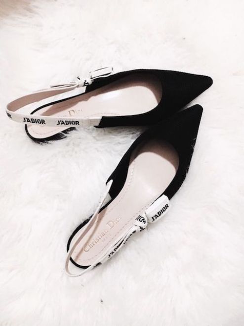 Un altro modello di slingback che adoro è quello di Dior a punta e con nastro in cotone…